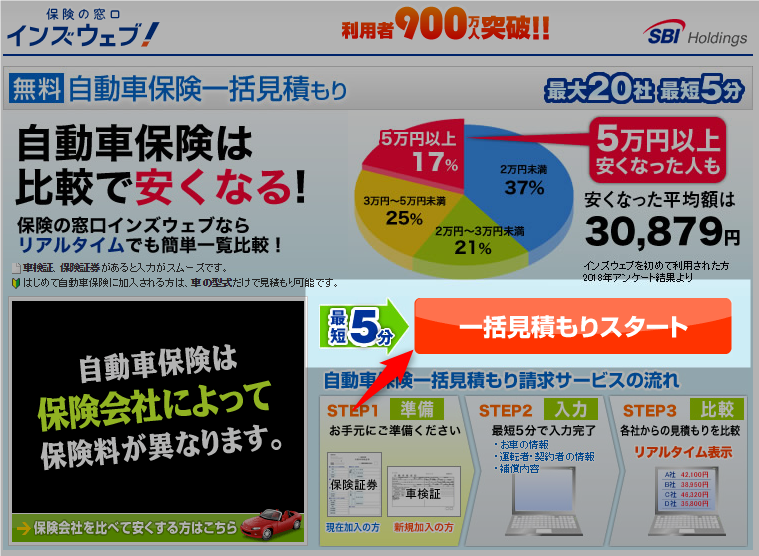 「インズウェブ」とは自動車保険の見積もりを一括請求できるサイトです。